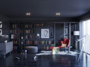 – Nội thất: Lựa chọn một chiếc tủ sách vững chãi, chắc chắn để chứa sách và chất liệu bằng gỗ, kim loại… Bàn ghế sử dụng những sản phẩm chất lượng để tạo cảm giác êm ái, thoải mái khi dùng trong thời gian lâu dài. Không nên sắp đặt quá nhiều đồ đạc ở phòng sách, vì tạo cảm giác bí bách, ngột ngạt.