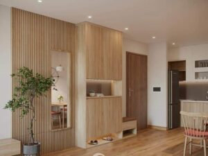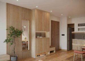 Kết hợp cùng đó là tủ giày cao kịch trần giúp lưu trữ được nhiều đồ dùng giúp căn nhà trở nên gọn gàng và sạch sẽ hơn, đảm bảo chất lượng cuộc sống hiện đại