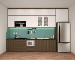 Bếp được làm từ chất liệu gỗ MDF (Medium Density Fiberboard), một loại vật liệu cung cấp độ bền và độ ổn định cao. Sự kết hợp giữa MDF và lớp phủ Melamine không chỉ tạo ra bề mặt mịn màng và dễ dàng vệ sinh mà còn bảo vệ bề mặt khỏi các tác động từ môi trường, đảm bảo bề mặt bền màu và không bị biến dạng theo thời gian.