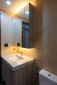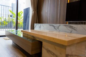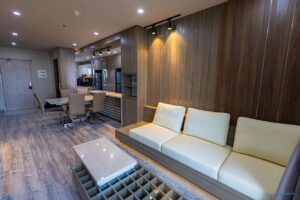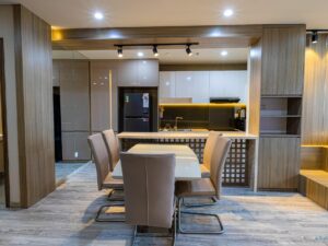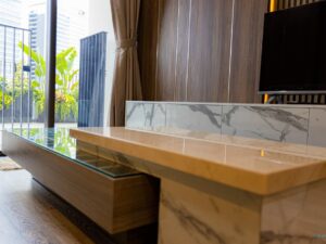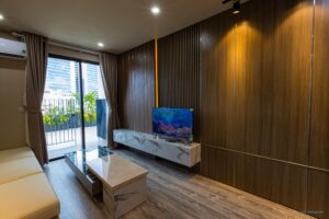 Nội thất được thiết kế theo phong cách hiện đại. Sử dụng màu sắc ấn tượng. Các vật liệu cao cấp, như gỗ An Cường, đá tự nhiên gốc thach anh chống bám bẩn & ố vàng. Tất cả tạo cảm giác sang trọng, tinh tế và ấm cúng.