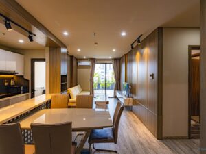 Việc thiết kế cải tạo lại nội thất căn hộ Hà Đô Centrosa không chỉ giúp tối ưu hóa diện tích không gian, mà còn nâng cao chất lượng cuộc sống. Căn hộ gồm 2 phòng ngủ, 2 phòng tắm và phòng khách, cùng nhà bếp rộng rãi.