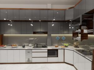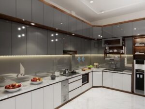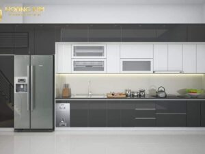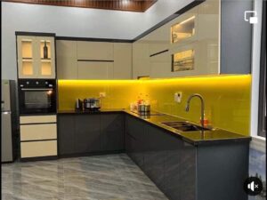 Bề mặt bóng loáng của acrylic tạo ra một vẻ đẹp sang trọng và hiện đại cho bếp