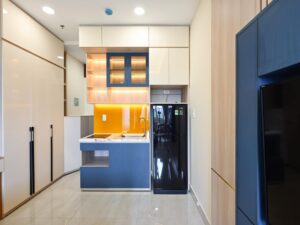 Thiết kế nội thất phòng bếp ngoài việc đảm bảo tính thẩm mỹ còn cần thêm việc bố trí công năng và hệ thống kỹ thuật phù hợp. Không gian bếp chung cư tích hợp sử dụng các thiết bị tiện ích, thông minh. Giúp tăng khả năng lưu trữ của căn hộ.
