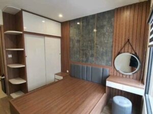 Toàn bộ nội thất trong căn hộ được chế tác từ gỗ MDF cao cấp, mang đến vẻ đẹp tinh tế và sang trọng cho từng góc nhỏ. Gỗ MDF không chỉ bền đẹp mà còn thân thiện với môi trường, đảm bảo sự an tâm tuyệt đối cho gia đình bạn.