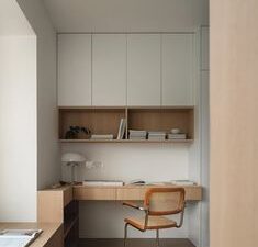 Bàn làm việc nhỏ hoặc kệ sách trang trí để tạo không gian làm việc hoặc học tập.