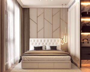 Phong cách tân cổ điển thường sử dụng những món đồ nội thất có kiểu dáng cầu kỳ, hoa văn tinh xảo. Các chi tiết như phào chỉ, hoa văn, đường nét uốn lượn… được sử dụng để tạo nên sự sang trọng và đẳng cấp cho không gian.