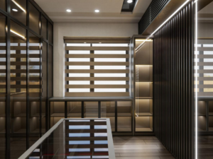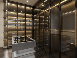 - Với thiết kế cánh kính mở, các cửa kính sẽ được gắn các bản lề bên cạnh tủ. Tích hợp gắn bên cạnh tủ vì vậy số lượng cánh tủ sẽ tùy thuộc vào diện tích tổng thể của tủ áo.