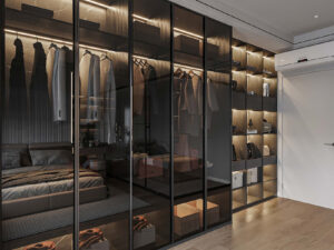 -MDF lõi vàng -Thùng phủ melamine -Cánh kính cường lực trong khung nhôm -Ván 17mm ,hậu 9mm |