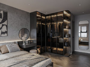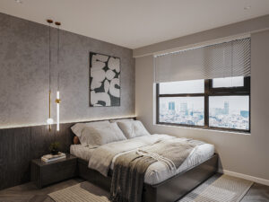 Phòng ngủ được xem như là trái tim của ngôi nhà, nơi luôn được chú trọng đầu tư và chăm chút tỉ mỉ để mang đến không gian sống thoải mái và tiện nghi nhất. Dựa theo sở thích của gia chủ, mẫu phòng ngủ được thiết kế nhẹ nhàng và đơn giản, giúp cho tổng thể mang vẻ đẹp thanh lịch và trang nhã. Vách lam gỗ ốp MDF đầu giường ngủ vừa đơn giản vừa thu hút vì có tông màu xám và đường nét thanh mảnh