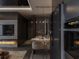 Thiết kế nội thất phòng ăn liền kề phòng khách và phòng bếp tiện lợi