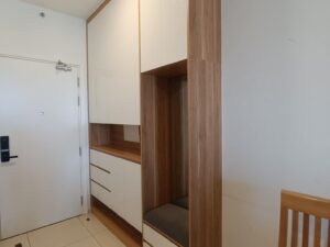 Tủ giày full trần lưu trữ được nhiều đồ dùng, giúp không gian nhà thêm rộng rãi và gọn gàng hơn