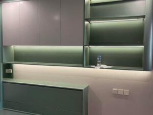 Bề mặt bóng loáng của acrylic tạo ra một vẻ đẹp sang trọng và hiện đại cho bếp