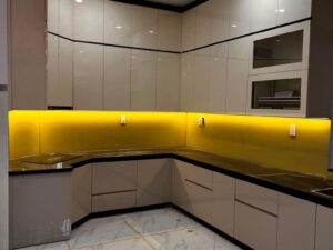 Tủ bếp phủ acrylic bóng gương là một lựa chọn phổ biến trong thiết kế nội thất hiện đại. Acrylic là một loại vật liệu nhựa dẻo nhẹ, trong suốt và có độ bóng cao. Khi được sử dụng để phủ lên tủ bếp, acrylic tạo ra một bề mặt mịn màng và bóng loáng, tạo cảm giác sáng bóng và sang trọng cho không gian bếp.