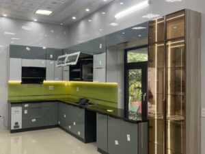 Acrylic tạo ra một bề mặt bóng loáng tương tự như gương, tạo điểm nhấn cho không gian bếp.