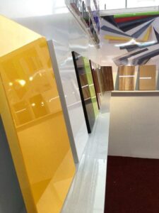 Đặc điểm nhận thấy của Acrylic là bề mặt bóng loáng như gương, có thể phản chiếu tạo cảm giác rộng rãi, thoáng đãng cho không gian. Không chỉ vậy, bề mặt acrylic làm không gian trở nên sang trọng, hiện đại hơn.