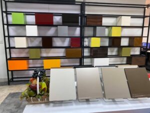 Bảng màu tủ bếp acrylic vô cùng đa dạng. Những màu sắc trơn, màu gỗ, matic từ đơn giản tinh tế đến sang trọng đẳng cấp đều sẵn sàng phục vụ mọi khách hàng.