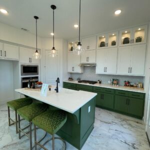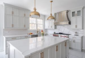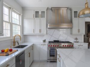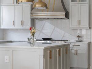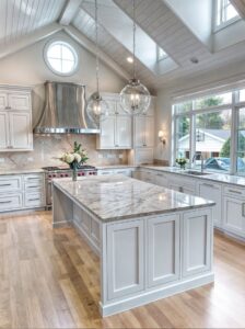 Phong cách tân cổ điển này không chỉ đem lại vẻ ngoài ấn tượng cho tủ bếp mà còn tăng cường giá trị thẩm mỹ cho toàn bộ không gian nấu nướng.